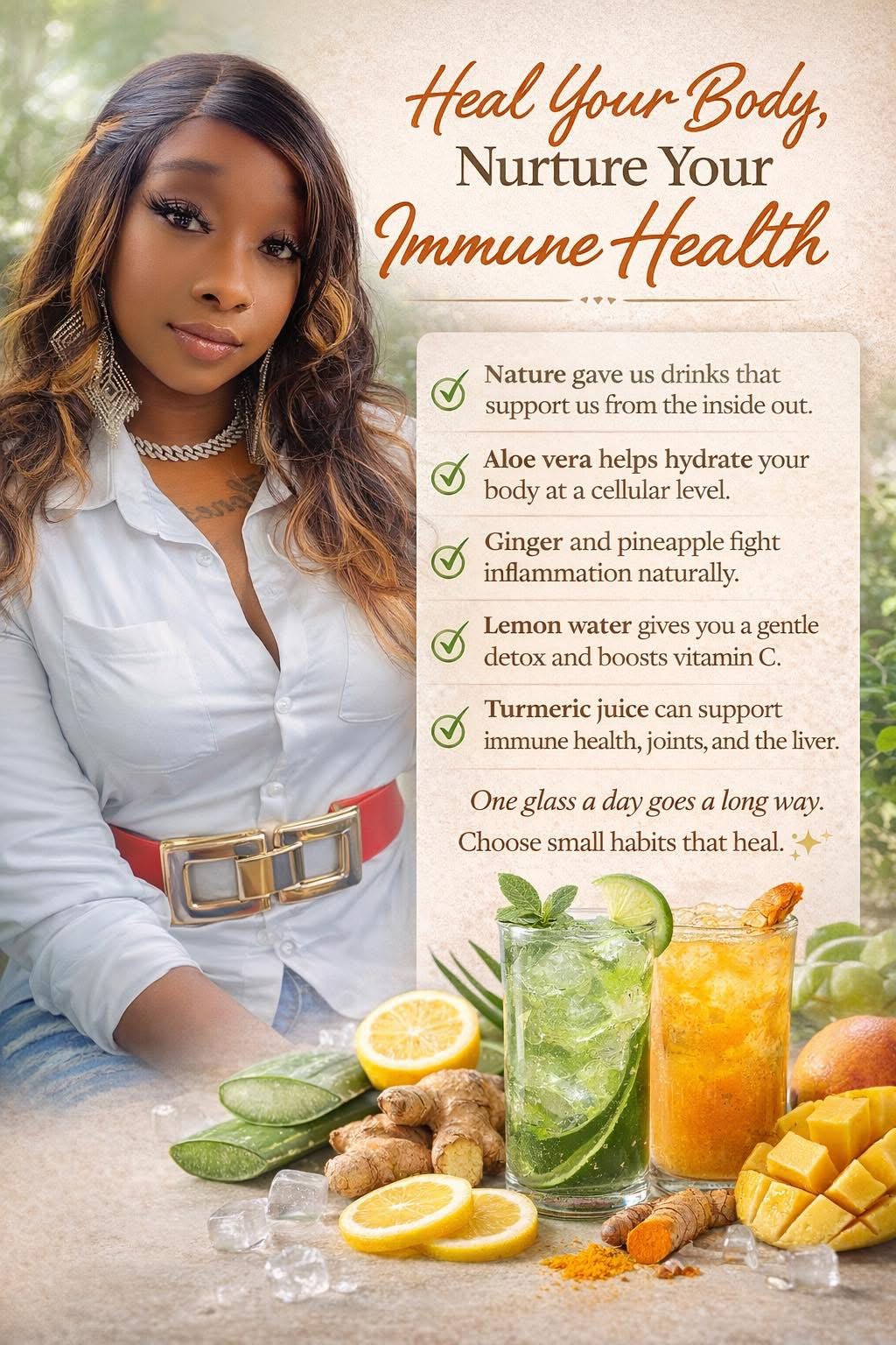 Then I started paying attention to what I was putting into my body — not in a rigid, diet-culture kind of way, but gently. Curiously. I began juicing. Simple blends. Real ingredients. Nothing extreme.